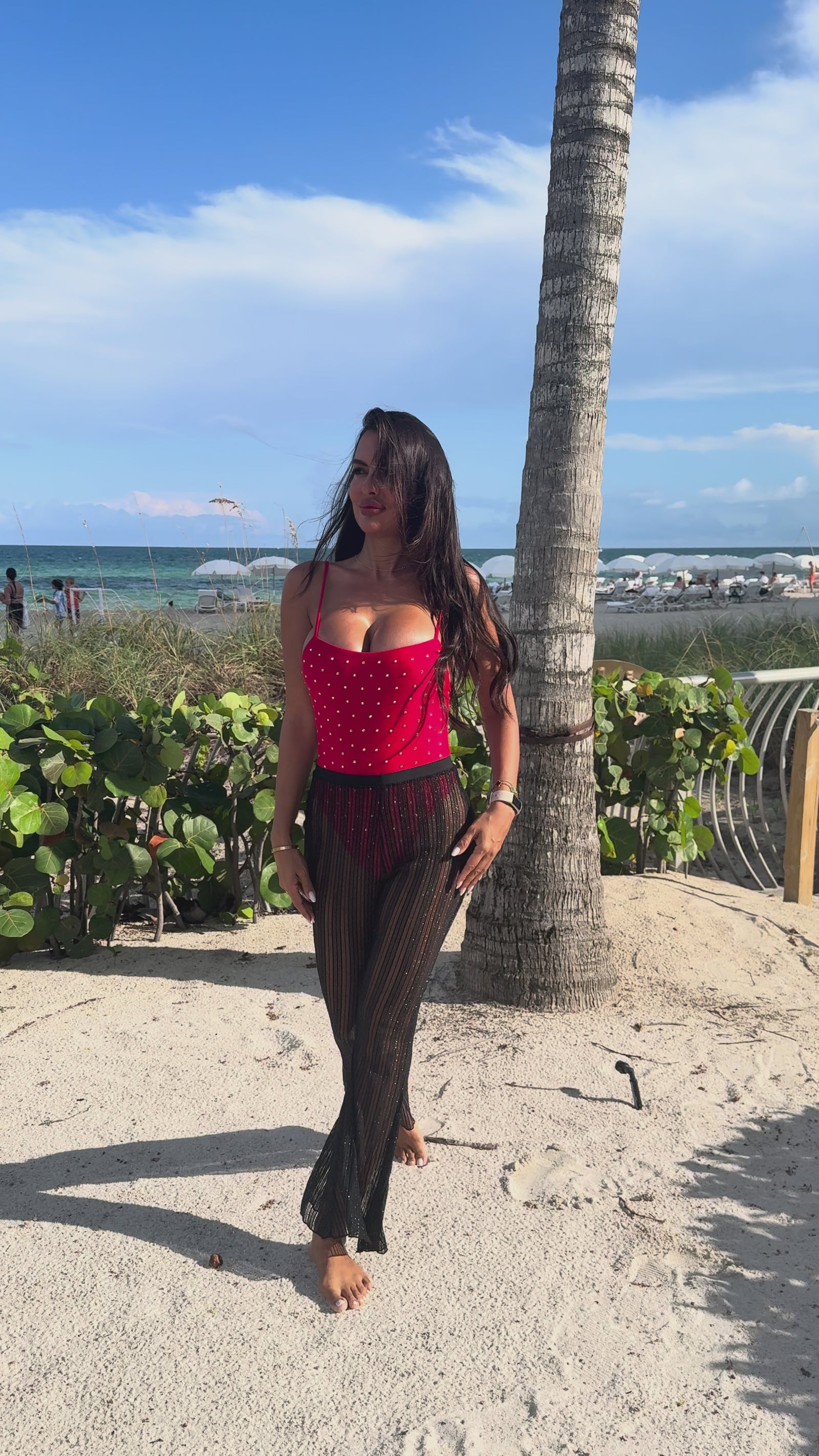 Radiate confidence and allure with the Crystal Swimsuit Red, a stunning expression of bold femininity and refined glamour. Expertly crafted from premium Italian stretch fabric, this one-piece embraces your figure with a smooth, sculpted fit that enhances every curve. The vibrant red hue exudes power and passion, making it the ultimate statement piece for luxurious beach escapes or chic poolside lounging. Delicately adorned with shimmering crystal embellishments, it catches the light beautifully, creating an irresistible sparkle with every movement. Designed with a sleek silhouette and adjustable thin straps, the Crystal Swimsuit Red blends timeless sophistication with contemporary edge — a perfect fusion of comfort, confidence, and elegance.