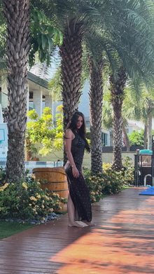 Turn heads with the Long Mesh Dress Beige, a statement piece designed for sun-soaked days and elegant evenings. This long, sheer beach cover-up features a soft beige mesh fabric that beautifully enhances your silhouette while offering a subtle, ethereal glow. Adorned with delicate crystal embellishments, it sparkles gracefully under the light, adding a touch of glamour to your beachside or resort look. The flattering back slit allows effortless movement, combining sensuality with sophistication. Lightweight and breathable, this cover-up is perfect for layering over your favorite swimwear — making it an essential piece for your next tropical escape or poolside party.