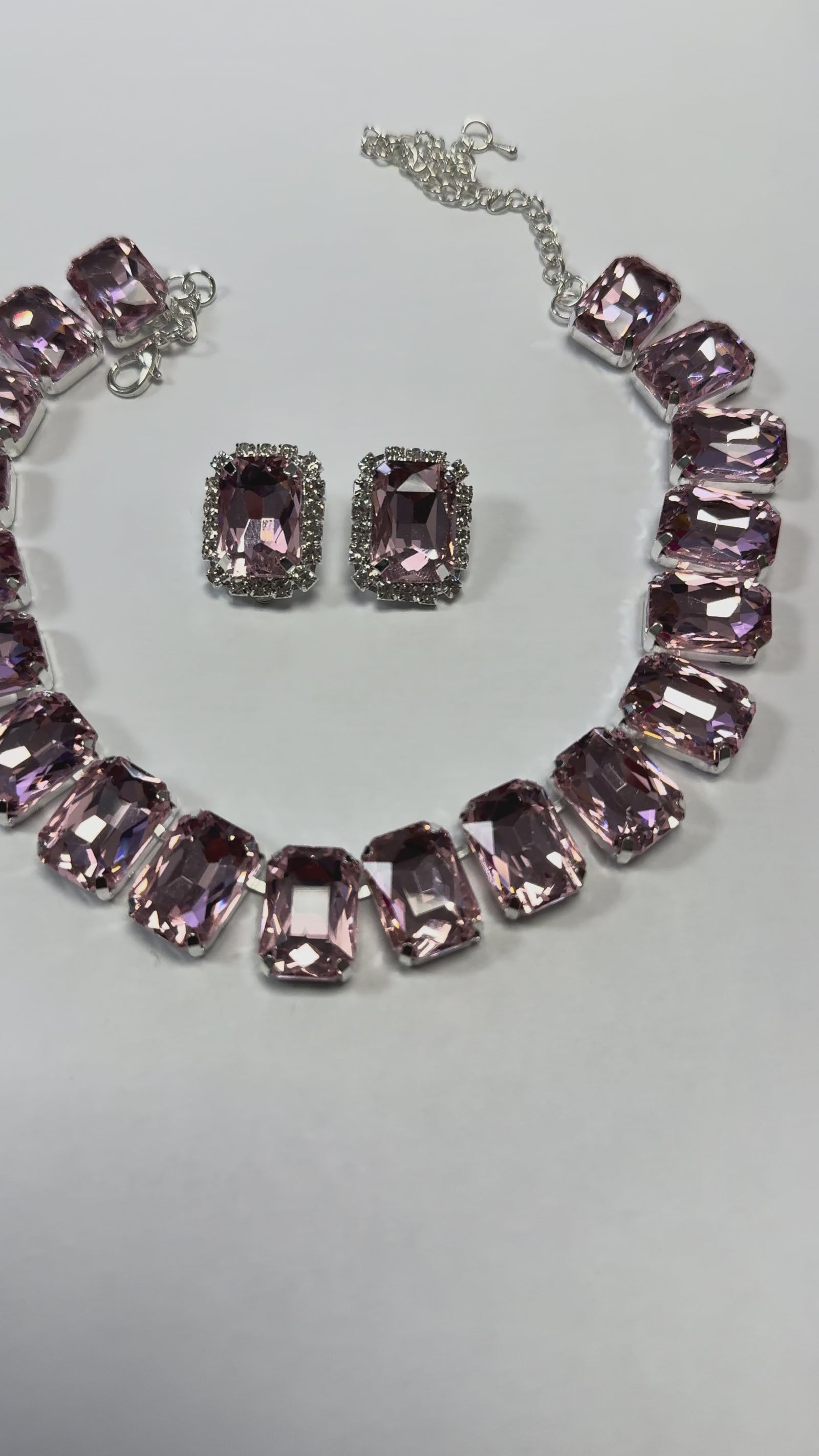 These Pink Earrings feature large rectangular stones with a soft blush tone that catches the light beautifully. Each stone sits at the center of a silver-toned frame lined with small, clear crystals, adding extra shine without feeling heavy. The clean shape gives the earrings a polished look, while the gentle pink color keeps them elegant and easy to style. They feel dressy enough for parties, weddings, and evening events, yet simple enough to wear with a classic outfit. The size makes them noticeable, but they still feel comfortable for longer wear. Pair them with solid colors, soft pastels, or evening dresses to complete your look. If you enjoy jewelry that feels graceful with a touch of sparkle, these earrings bring charm and confidence to any occasion.